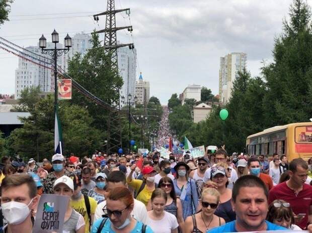 В субботу, 25 июля, в Хабаровске, Владивостоке и Южно-Сахалинске снова проходят несанкционированные митинги и шествия местных жителей, поддерживающих арестованного губернатора Хабаровского края Сергея Фургала